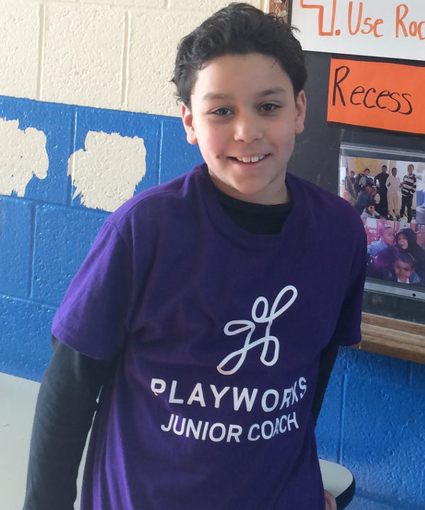 Junior Coach Orlando is a fourth grader at the Blackstone Elementary School in the South End with Coach Cheryl. He has shown incredible growth as a student and a youth leader since becoming a Junior Coach in October. When Coach Cheryl first met Orlando, he had trouble taking directions and would often distract his classmates in and out of class time. However, he had a dream to be a Junior Coach and nothing could stop his goal of obtaining a purple Junior Coach shirt. He continued to work with Coach Cheryl to prove that she could rely on him, often times picking up equipment without being asked and assisting his classmates in transitioning back to class quickly and quietly. After speaking with school administration and teachers, Coach Cheryl decided to give Orlando an opportunity to be a Junior Coach. Since becoming a Junior Coach, Orlando has shown incredible confidence and has flourished in his new leadership role.