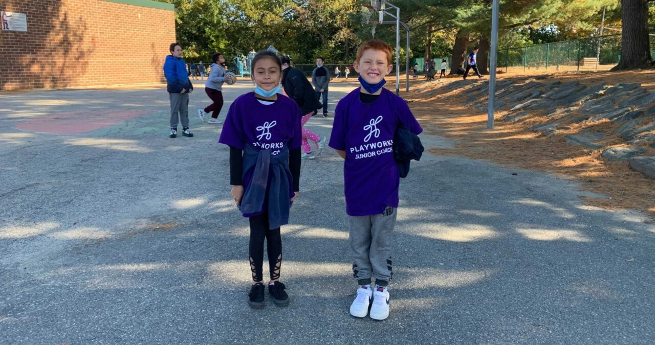 Each October, as the leaves begin to change on Playworks playgrounds across Boston, Lawrence, and New Bedford, another color begins to emerge. Bright purple Junior Coach shirts make their appearance as 4th and 5th grade students selected to be peer leaders come out to recess for the first time as game leaders, equipment managers, and role models for their younger schoolmates.
