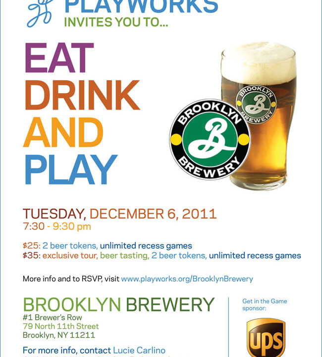 Brooklyn Brewery and Playworks are teaming up for a Play Night at the Brooklyn Brewery. Stop by for a delicious sampling of Brooklyn Brewery beers, complimentary appetizers, Playworks games, and the 2011 Playworks Rock-Paper-Scissors tournament.