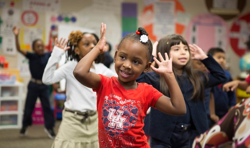 Media indoor-recess-4 March 16, 2020 Playworks Cummings Elementary School 10455 S Kirkwood Rd, Houston, TX 77099 Teacher is Ms. Hill, Kindergarten class the only released kids are in pic # 4891