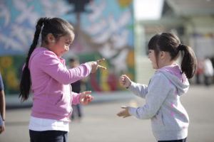 November 7, 2012 – Children play during recess at Bridges Academy in Oakland, California. At the elementary school, Playworks coaches and junior coaches play organized games with students to teach them rules of playing games and social skills.