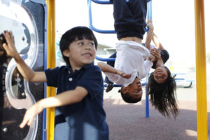 November 7, 2012 – Children play during recess at Bridges Academy in Oakland, California. At the elementary school, Playworks coaches and junior coaches play organized games with students to teach them rules of playing games and social skills.
