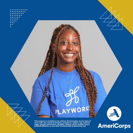 Hi, my name is Jazlenn Williams but I go by Coach Jazz. This is my first year serving with AmeriCorps as a Playworks coach but I have served with AmeriCorps before. I am passionate about empowering our youth as they are our future. My favorite recess game is foursquare. I love to read and play video games. My goal as a Playworks coach is to promote safe play and having fun.
