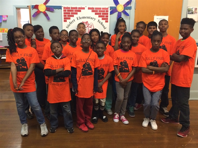 Media bully_free_siefert September 15, 2017 Siefert Junior Coaches pose in shirts that say “Bully Free Starts with Me” on the front and “Bully Free Zone” on the back.